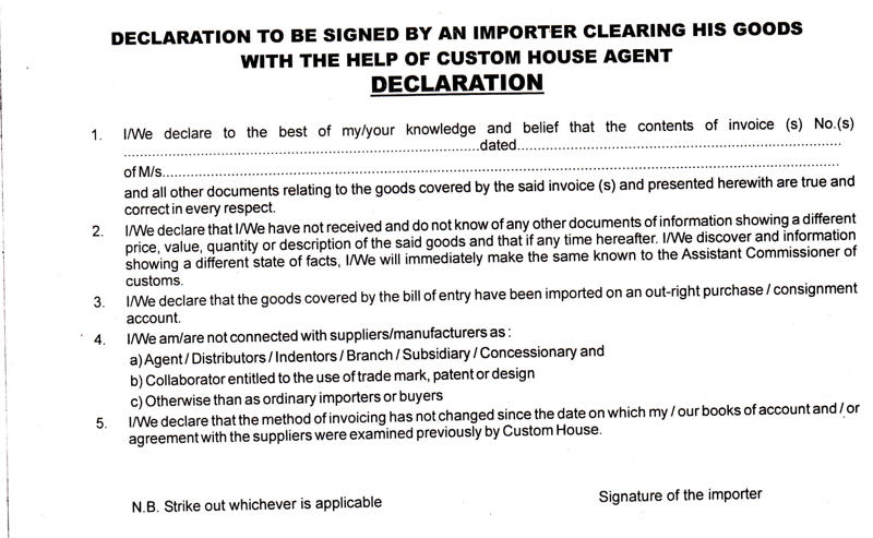 Drawback Declaration